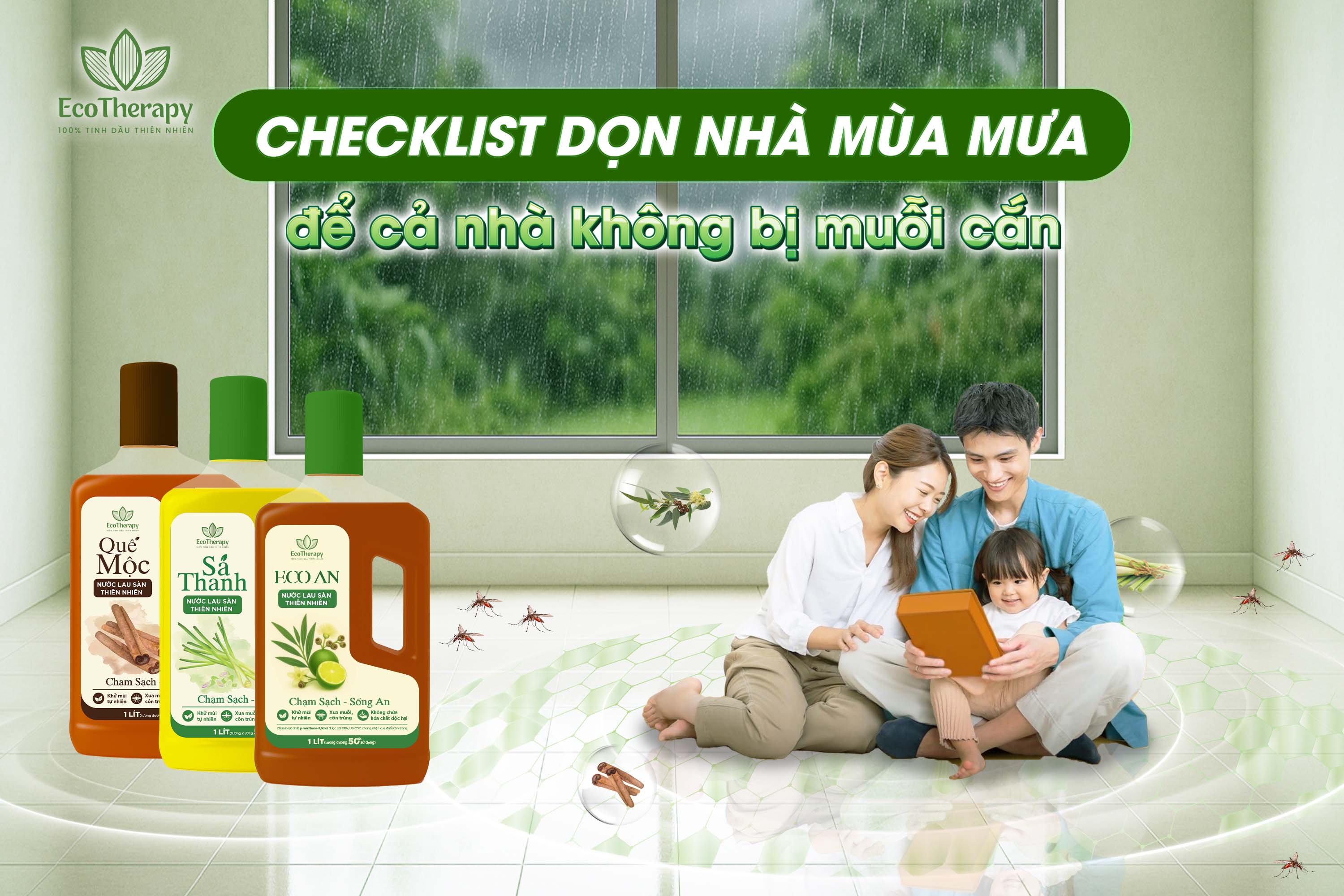 👉 Giải pháp hữu ích: Kết hợp checklist dọn nhà + nước lau sàn EcoTherapy xua muỗi thiên nhiên để bảo vệ gia đình bạn suốt mùa mưa.
