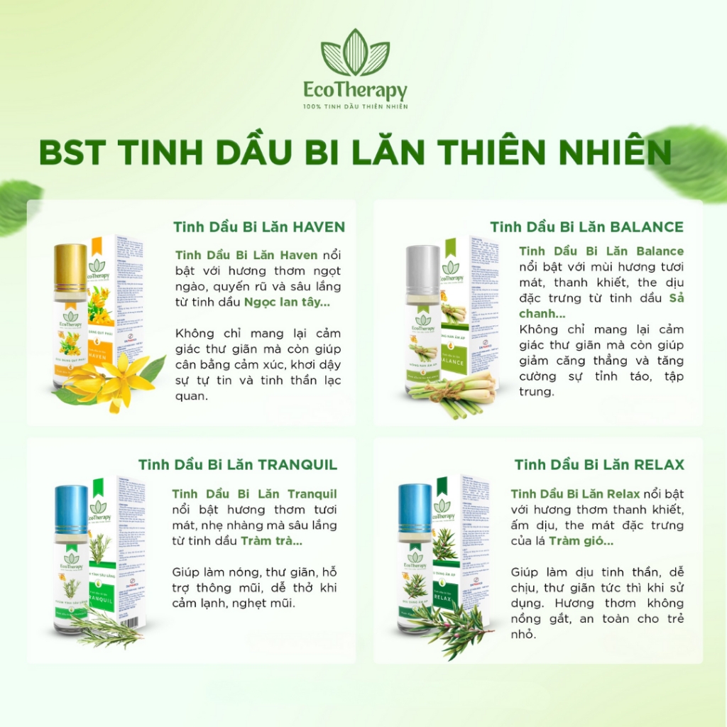 Nếu bạn đang tìm kiếm tinh dầu lăn thư giãn, tinh dầu giảm stress, hoặc tinh dầu thiên nhiên tiện lợi mang theo, combo 11 loại EcoTherapy là lựa chọn lý tưởng cho cá nhân và gia đình.