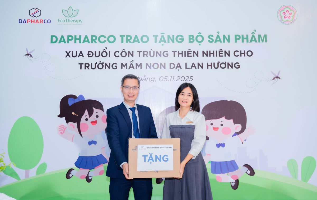 Công ty đã khởi động chuỗi hoạt động “Dapharco đồng hành cùng các cơ sở giáo dục ngăn ngừa và hạn chế bệnh truyền nhiễm do muỗi” bằng việc trao tặng bộ sản phẩm xua đuổi côn trùng thiên nhiên Ecotherapy cho Trường Mầm non Dạ Lan Hương (quận Hải Châu, TP. Đà Nẵng).