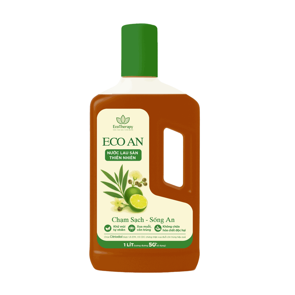 ECO AN là sản phẩm đầu tiên tại thị trường Việt Nam chứa 3 hoạt chất: Citriodiol® (chiết xuất từ tinh dầu bạch đàn chanh), Decyl Glucoside (Chất làm sạch sinh học từ ngô & dừa, không chứa hóa chất gây hại) và Cao Bồ Hòn mang đến giải pháp làm sạch dịu nhẹ từ thực vật, không hóa chất độc hại, phù hợp với lau sàn nhà hằng ngày mà vẫn giữ được hương thơm ấm áp, dễ chịu, giúp xua đuổi muỗi, gián, côn trùng một cách hiệu quả và an toàn, phù hợp với người theo đuổi lối sống xanh.