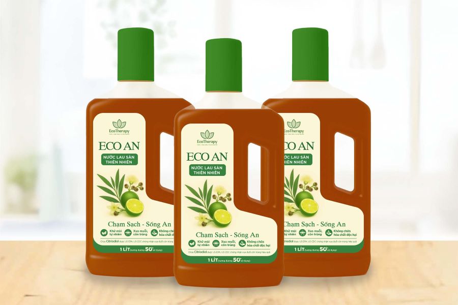 - Nước lau sàn ECO AN: Là sản phẩm đầu tiên tại Việt Nam kết hợp bộ ba hoạt chất tự nhiên: Citriodiol® (từ tinh dầu bạch đàn chanh), Decyl Glucoside (chất làm sạch sinh học từ ngô và dừa) và Cao Bồ Hòn. Công thức này tạo nên giải pháp lau sàn dịu nhẹ từ thực vật, không hóa chất độc hại, vừa làm sạch vừa lưu hương ấm dễ chịu, đồng thời hỗ trợ xua đuổi muỗi, gián và các loại côn trùng. ECO AN phù hợp cho gia đình theo đuổi lối sống xanh và yêu chuộng các sản phẩm an toàn, thuần tự nhiên.